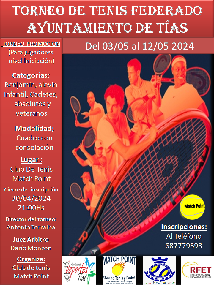 Organizador: +34 629 531 988 E-mail: clubmatchpoint@hotmail.com